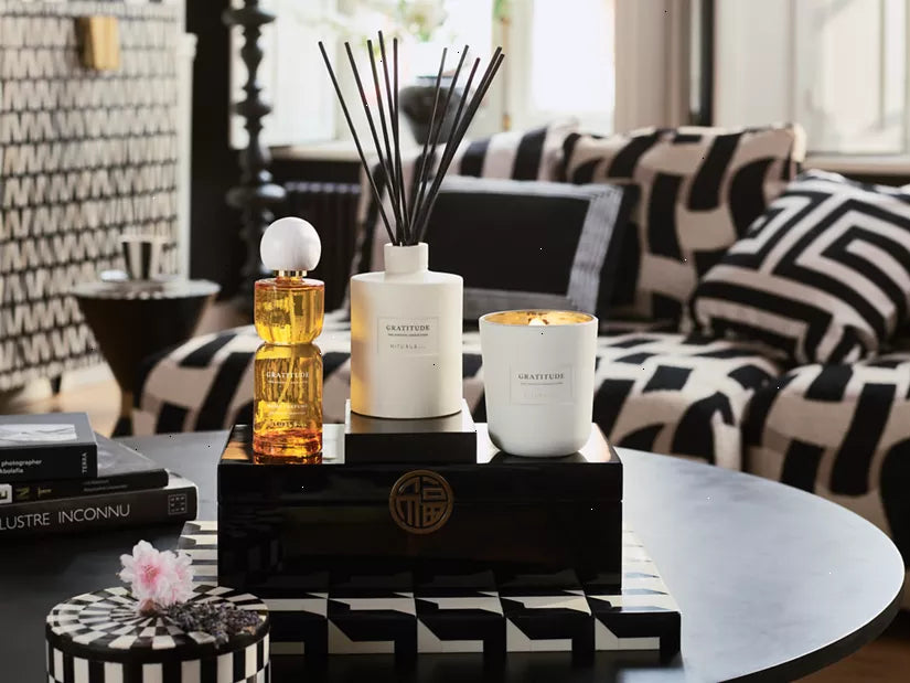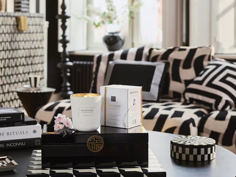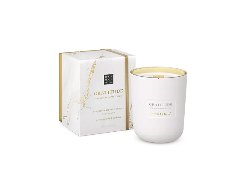 Infused with a one-of-a-kind fragrance created by one of the world’s top perfumers, this deluxe candle is a testament to the beauty of gratitude. With the warm and comforting scent of peach, lavender and vanilla, allow its gentle glow to be a reminder of the joy found in simple moments. This candle has a burning time of up to 60 hours. Enclosed in a protective cotton bag, this stunning design features a gold inner that reflects the candle's glow, a luxurious wooden wick that creates a gorgeous, larger shaped flame, plus, a new refillable style holder.