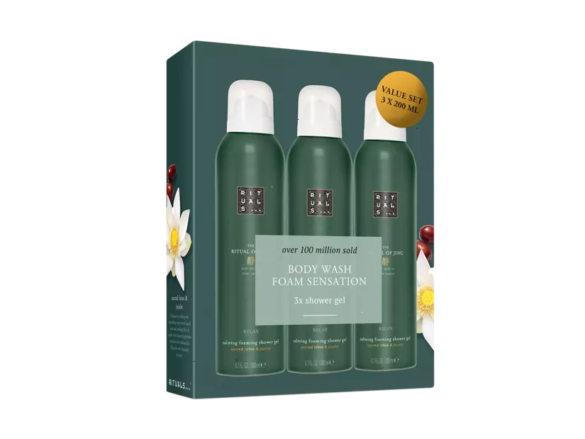 The Ritual of Jing foaming shower gel contains the relaxing and nourishing properties of lotus flower and the soothing effect of jujube. This wonderful gift set contains three full-size foaming shower gels, ensuring you can continue to create a calm state of mind and infuse your day with tranquillity and a sense of peace. Order now from the official webshop.