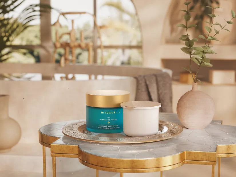 Nourish and rejuvenate your skin with this 48-h hydrating body cream and refill pack from The Ritual of Karma. With its light whipped texture, the cream is easy to apply and quickly absorbed for a non-greasy, silky finish. Featuring our powerful Hydra-Boost Complex – a blend of aloe vera, squalane, and algae – this luxurious cream locks in moisture post-shower to soothe dry, thirsty skin, and restore suppleness and elasticity. When your glass jar is empty, easily top it up with the handy refill. Order now from the official webshop.