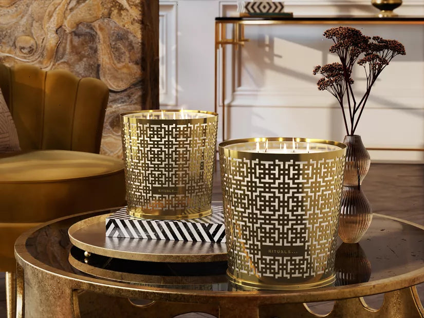Take a journey into sophistication and mystery with this luxurious Mystic Cedar scented candle from our Private Collection. Based on the aromatic blend of cedar wood and labdanum, with spicy notes of clove and incense, this large candle will last for up to 120 hours. The candle's translucent glass allows the flickering flame to beautifully filter through the engraved cutouts of the metal candle holder. Once empty, the reusable metal sleeve can be slotted around any of our 1600g candles. Order now from the official webshop.