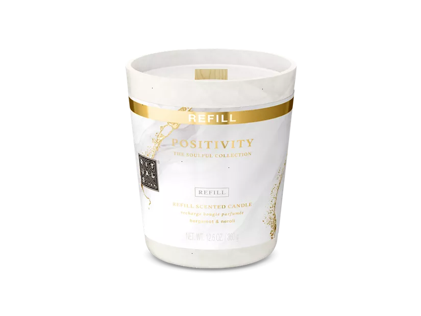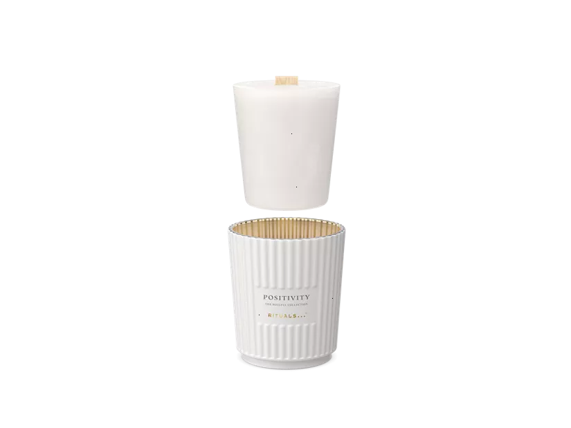 We specially developed the scented candles in this format with a paper cup for refilling our glass candle jars. This way, you can use the jars for a long time. Please note: the candles should not be lit in the paper cup, as it is not fire-safe and not safe for use. This deluxe candle with wooden wick has been expertly designed to fill any room with positivity. With a blend of citrusy bergamot, floral neroli, and earthy vetiver, its invigorating aroma uplifts the senses. Order now from the official webshop.