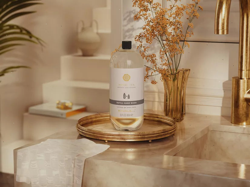 Time to top up your hand wash? With this 600ml refill you can replenish your luxury Rituals hand wash dispenser twice! Designed to transform a simple household chore into a peaceful moment, our Royal Tea fragrance from the Private Collection combines sparkling fresh notes with a mossy and woody base, a heart of bamboo leaves and herbal nuances, plus geranium and sweet fruity fig. Our hand wash formulas are pH neutral, so they’re gentle on your hands while still providing a thorough cleanse. Order now from the official webshop.