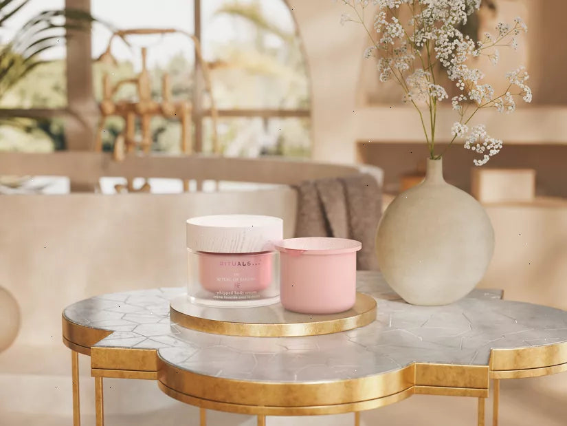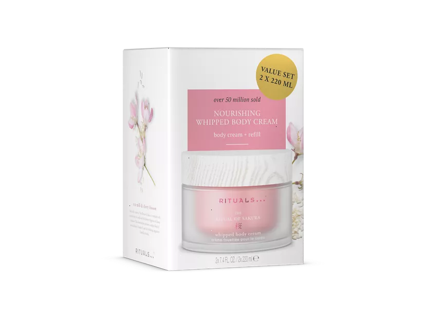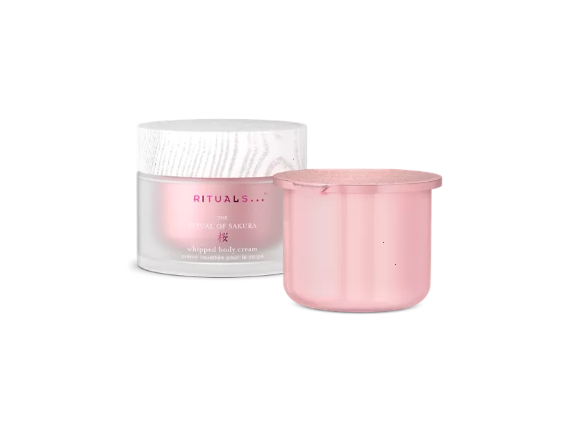 Keep your skin soft, supple and scented throughout the day with this nourishing body cream and refill pack from The Ritual of Sakura. With its whipped texture, this rich formula quickly melts into your skin, for a non-greasy, silky finish. Featuring our unique Moisture Lock Complex and a blend of rich oils, it keeps your skin hydrated for 48 hours. Infused with cherry blossom and rice milk for a delicate floral aroma. When the luxurious glass jar is empty, easily top it up with the handy refill. Order now from the official webshop.