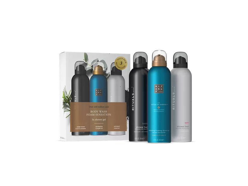 Discover your new favourite fragrance with our shower foam discovery pack, featuring three indulgent formulas powered by our gel-to-foam technology. When the gel comes into contact with water, it transforms into a rich and velvety foam that will leave your skin both clean and nourished. The perfect opportunity to try out three of our most refreshing fragrances, this set includes a shower foam from The Ritual of Hammam, Sport and Homme. Order now from the official webshop.