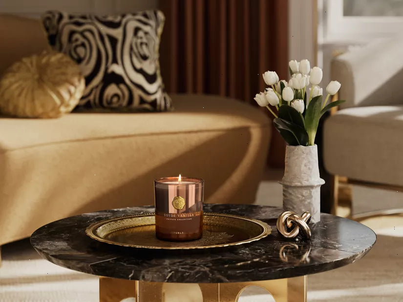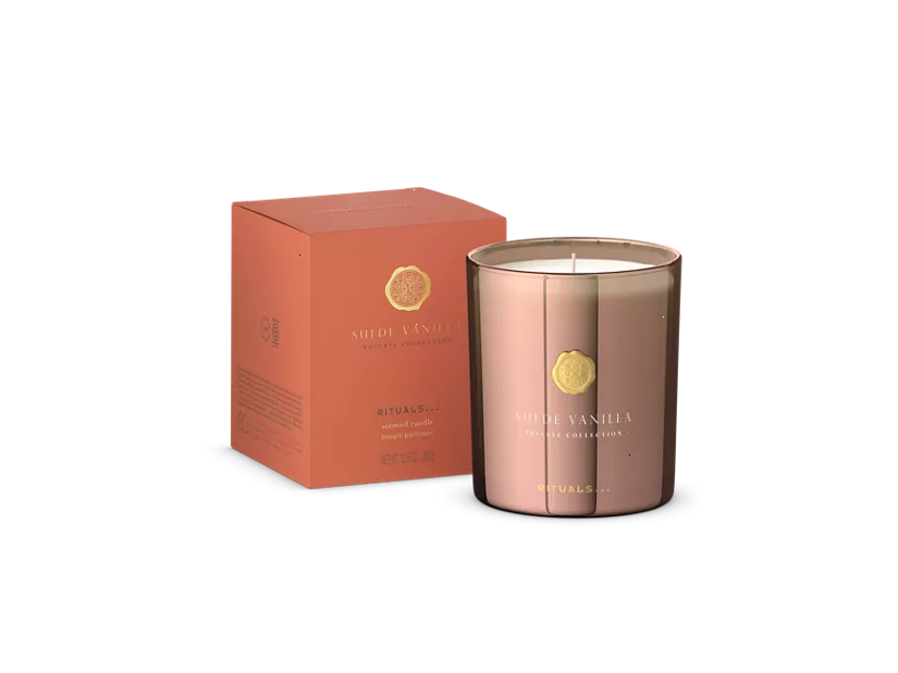This luxurious scented candle from our Private Collection evokes the scent of warm vanilla. Our sensual Suede Vanilla scented candle is a warm and aromatic fragrance that opens with the sweet and comforting scent of vanilla with base notes of cardamom, rosemary, patchouli and vetiver. Provides up to 60 hours of burning time.
