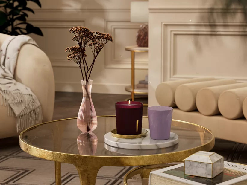 We specially developed the scented candles in this format with a paper cup for refilling our glass candle jars. This way, you can use the jars for a long time. Because the wax is purely plant-based, it can be easily removed after cooling in the fridge. Please note: the candles should not be lit in the paper cup, as it is not fire-safe and not safe for use. Based on authentic Ayurvedic ingredients like Indian rose and sweet almond oil. The candle lasts for up to 50 hours. Order now from the official webshop.