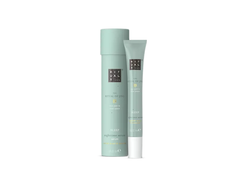 For deeper sleep and better dreams; sleep better with The Ritual of Jing Sleep serum. This easy-to-use roller produces a light cream that combines the calming effects of sandalwood with the soothing benefits of lavender. Use the roller to gently massage your temples, forehead and neck to set your mind to sleep.