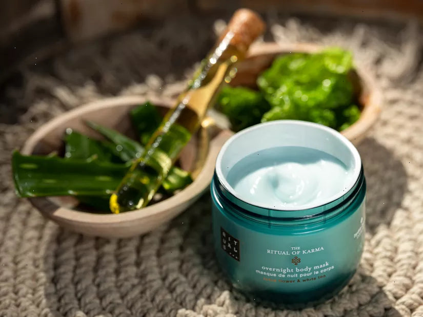 Get the ultimate indulgent beauty sleep with The Ritual of Karma overnight body mask. This lightweight gel cream is intended to regenerate, replenish and nourish dehydrated skin while you sleep, thus restoring suppleness and elasticity*. Formulated with a white tea and lotus flower fragrance and the Hydra-Boost Complex with squalane, aloe vera and algae.
