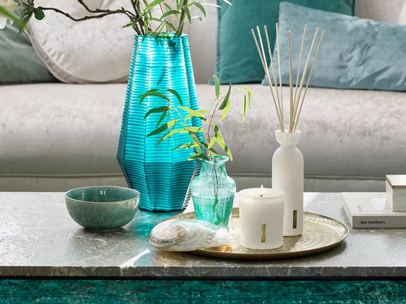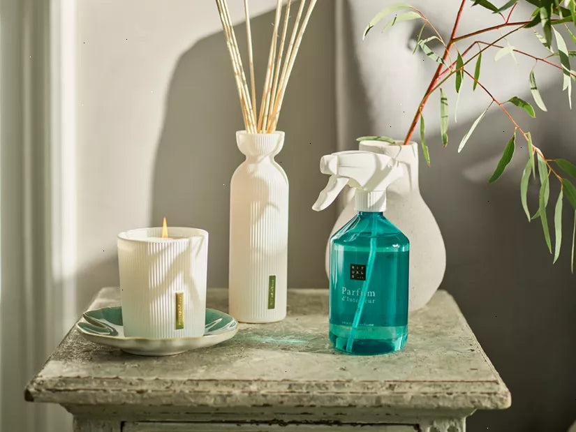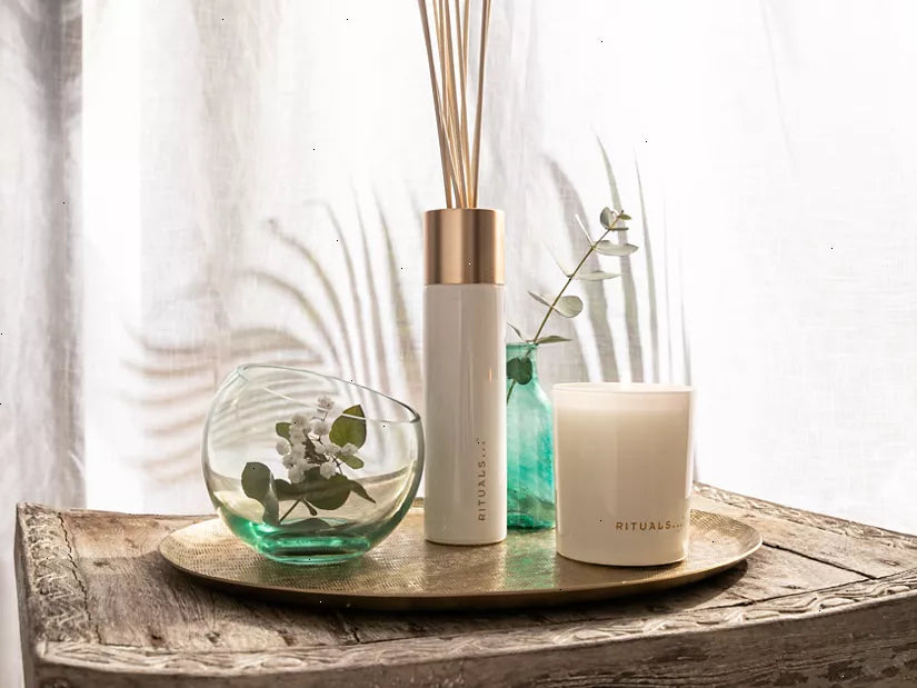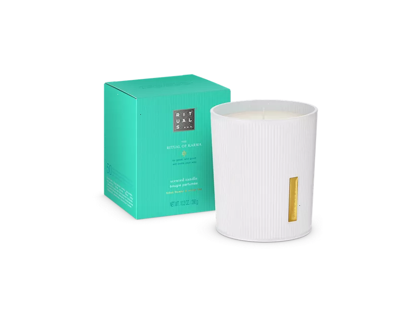 Create a warm, summer atmosphere in your house with The Ritual of Karma Scented candle. Featuring the delicately sweet aroma of lotus flower combined with stimulating white tea, you can enjoy it for up to 50 hours. Let the sunny and refreshing notes transport you to a paradise far away. Opening with a fresh burst of bergamot and grapefruit, this invigorating and sparkling composition leads to a soft heart of lotus, orange flower and lilac. The woody dry down of musk and sandalwood prolongs the summer evening scent for hours and hours. To enhance your scent experience, combine it with The Ritual of Karma fragrance sticks for a special summer ambiance. Order now from the official webshop.