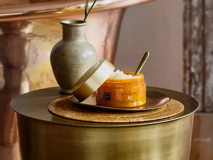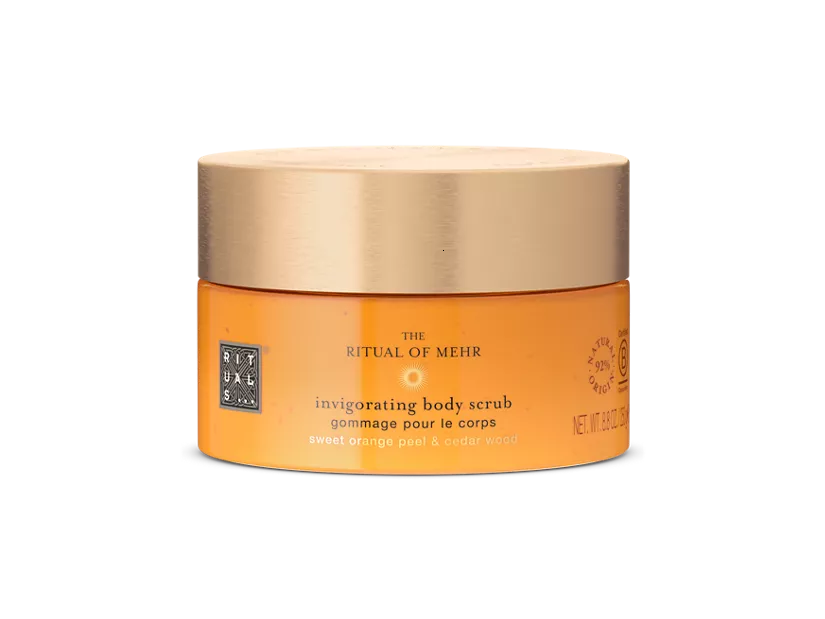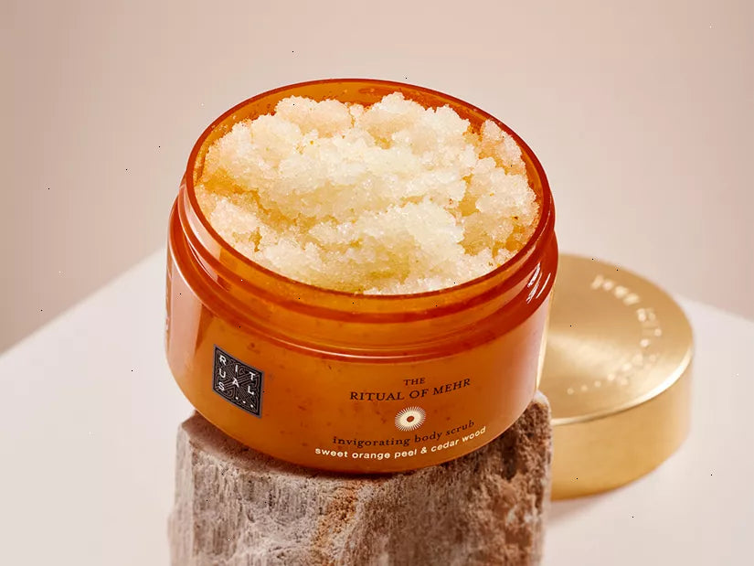 Exfoliate the skin to reveal a smoother look and feel, while also adding an extra layer of pampering to your body care regimen. The Ritual of Mehr body scrub is a luxurious polish enriched with 92.6% ingredients of natural origin. The rich oils in the formula nourish, soothe and energise the skin. With sugar and potent sweet orange peel particles to gently buff away dead skin cells, leaving the skin silky soft and glowing. Order now from the official webshop.