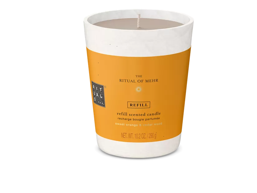 We specially developed the scented candles in this format with a paper cup for refilling our glass candle jars. This way, you can use the jars for a long time. Because the wax is purely plant-based, it can be easily removed after cooling in the fridge. Please note: the candles should not be lit in the paper cup, as it is not fire-safe and not safe for use. Based on the reassuring zesty scent of sweet orange and cedar wood. The candle lasts for up to 50 hours. Order now from the official webshop.