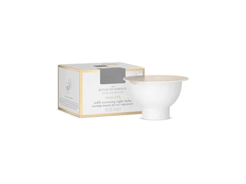 Show respect for your skin and respect for nature with this eco-chic refill for your restoring night balm. It fits perfectly in your luxurious jar and contains the same unique melting texture that transforms from a balm into a gentle oil gel, working its magic overnight when the skin is most receptive. With our CICA Firming Complex, it helps to improve mature skin's firmness and elasticity, leaving it supple, full of youthful radiance, and free from visible signs of fatigue. Its calming lavender scent also soothes the soul and promotes ultimate relaxation before going to sleep.