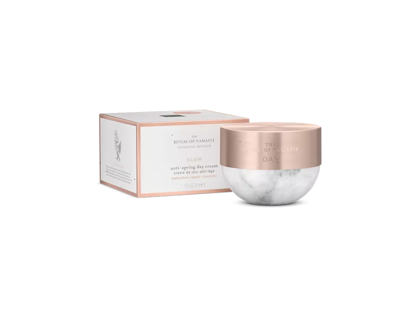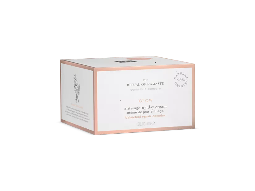 Get your glow on every day thanks to this game-changing anti-ageing day cream from The Ritual of Namaste with our new iconic Bakuchiol Repair Complex. This helps revitalise the skin and boost its radiance with a formula containing effective ingredients like bakuchiol – the plant-based alternative to retinol. Combined with wild indigo, the complex helps to visibly minimise the appearance of fine lines, improve the skin's elasticity and protect against the negative influence of free radicals. The result? Softer, suppler and younger-looking skin.