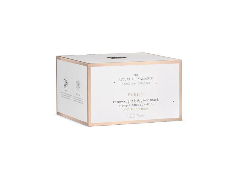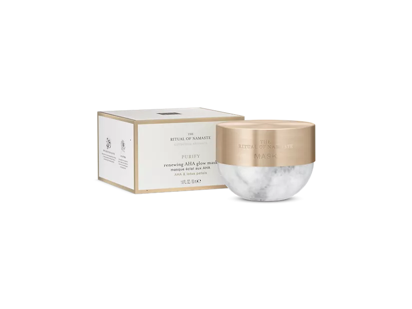 Ready, set, glow! This facial mask from The Ritual of Namaste contains natural AHA, designed to increase cell turnover and boost your skin's radiance. It lightly exfoliates your skin, providing a natural, radiant glow to your complexion. Featuring some of nature's finest ingredients: lotus petals and saffron flower.