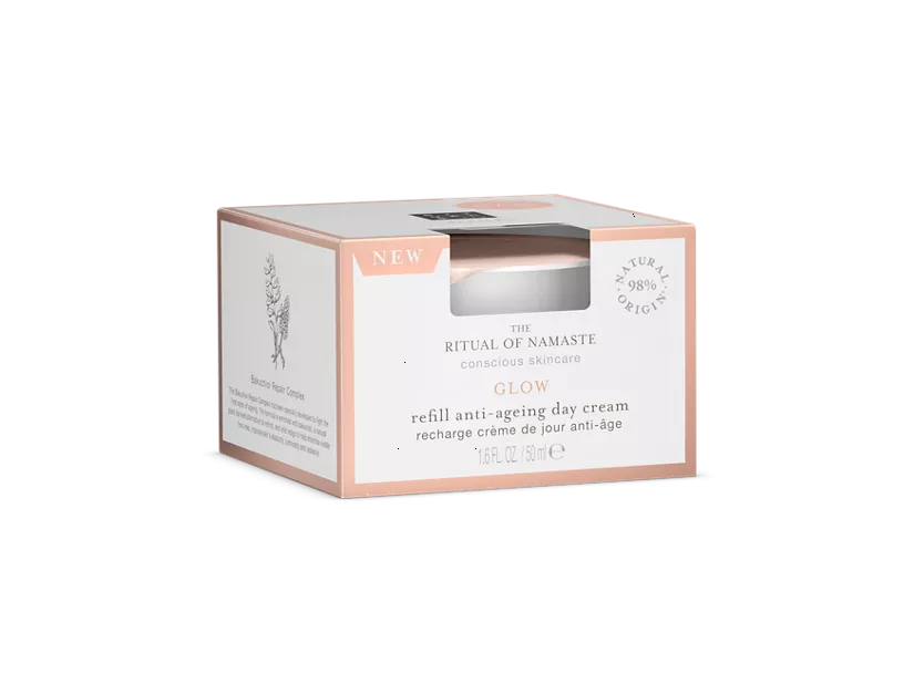 Show respect for your skin and respect for nature with this eco-chic refill for your anti-ageing day cream from The Ritual of Namaste. It fits perfectly in your luxurious jar and contains the same silky formula to revitalise the skin and boost its radiance. Enriched with our new iconic Bakuchiol Repair Complex, this cream helps to visibly minimise the appearance of fine lines, improve the skin's elasticity and protect against the negative influence of free radicals. The result? Softer, suppler and younger-looking skin.