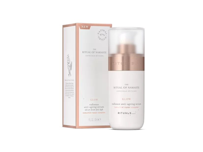 Get your glow on and fight the first signs of ageing day and night with this serum from The Ritual of Namaste. Featuring our new iconic Bakuchiol Repair Complex, it helps restore your skin's youthful-looking glow by minimising the appearance of fine lines and wrinkles while hydrating the skin for more radiance.