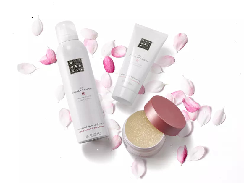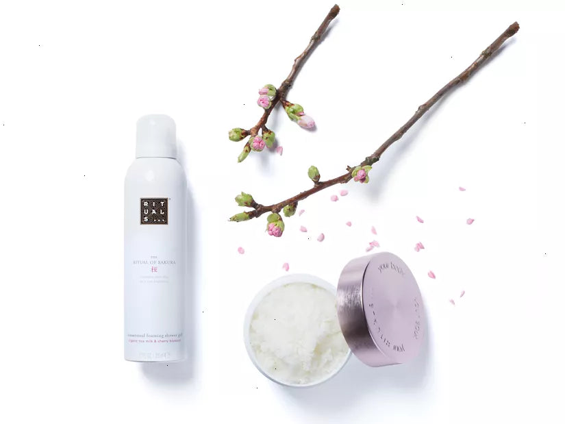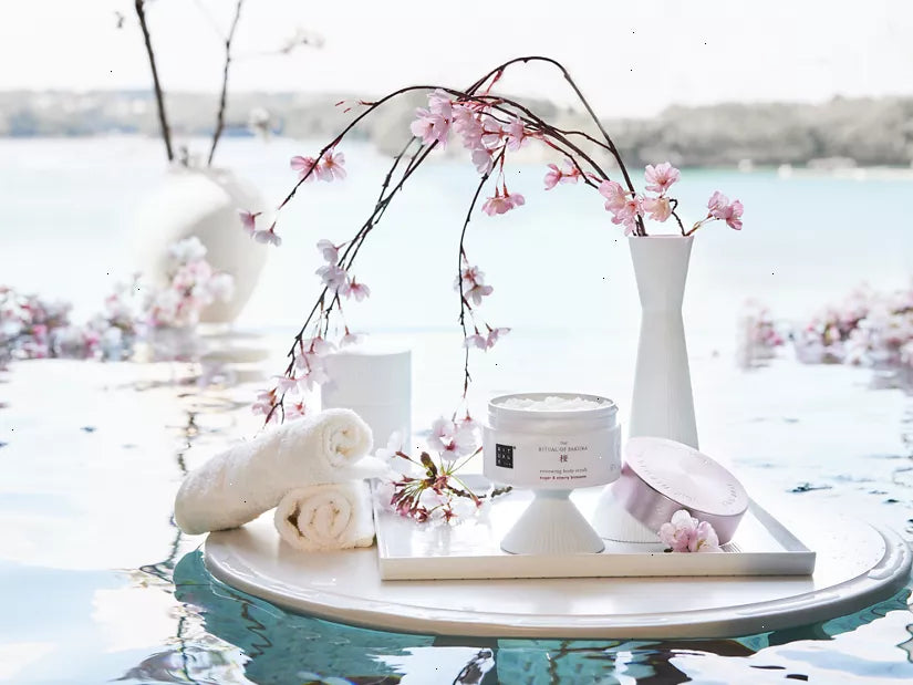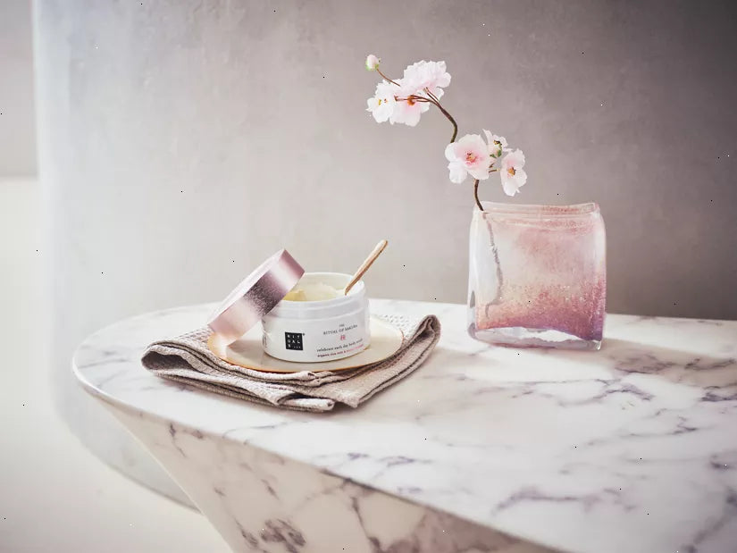 Complete your nourishing body care routine by following with The Ritual of Sakura dry oil or body cream. Crafted from 91% natural origin ingredients. Order now from the official webshop.