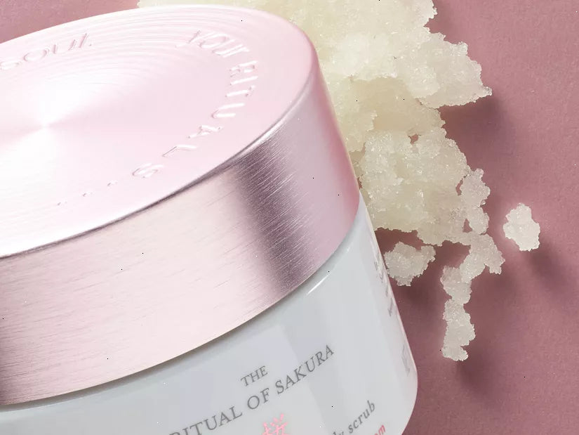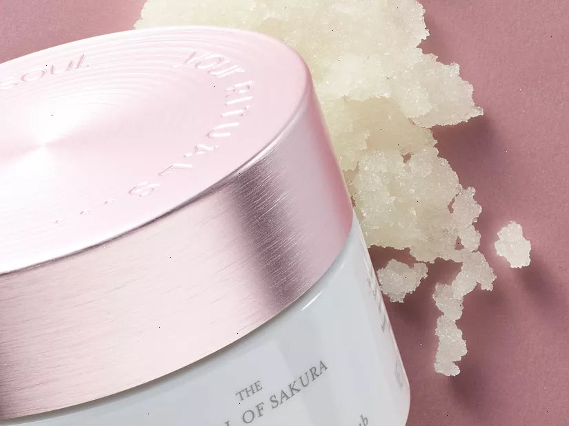 Awaken your skin by massaging this scrub onto damp skin to remove dull, dry skin, stimulate skin cell renewal, and improve your body’s complexion. Contains a luxurious mixture of sugar with a carefully formulated base of rich oils enriched with cherry exfoliant. The rice bran, tsubaki and jojoba oil will nourish the skin for a radiant and healthy glow.