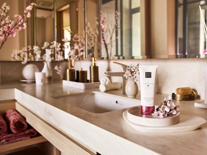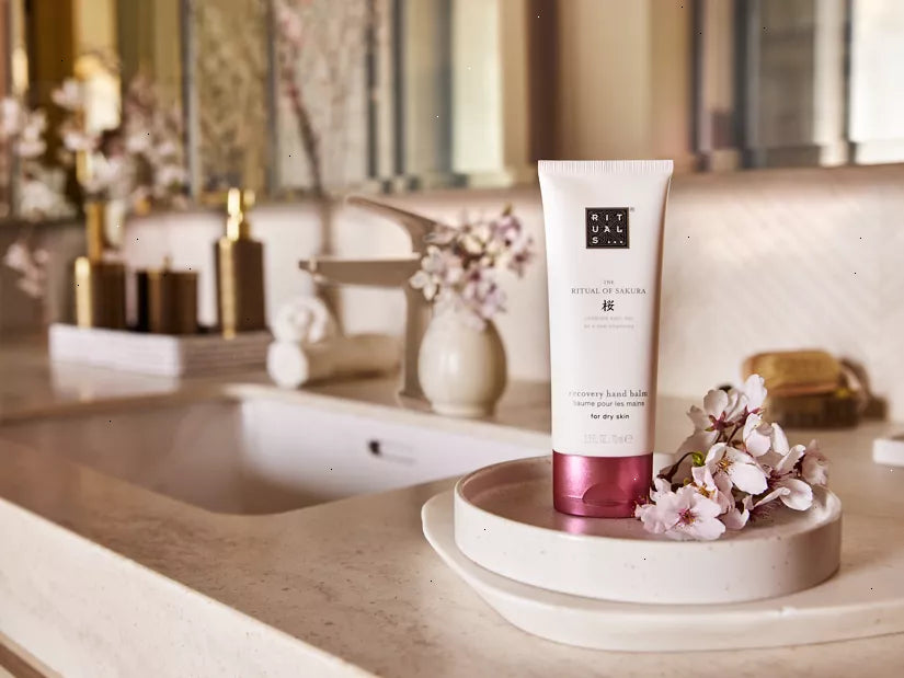 This rich and luxurious hand balm has been specially developed to soothe and nourish the skin. Especially developed for dry hands, the recovery hand balm holds powerful microbiome friendly active ingredients which strengthen the skin barrier and keep the skin balanced and healthy. Rice milk leaves the skin feeling soft and supple and cherry blossom ensures a delightfully sweet and creamy aroma. Crafted from 97% natural origin ingredients. Order now from the official webshop.