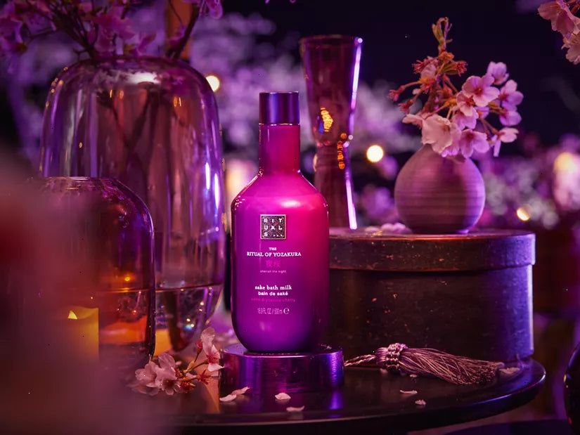 Experience the elevated magic of our sake bath, enriched with the goodness of fermented rice extract and Yoshino cherry. Sake is known for its richness in amino acids and plant proteins. It helps nurture and hydrate your skin, revealing a radiant complexion. Enhanced by a harmonious blend of soybean, grape seed, and sweet almond oils, it ensures lavish nourishment for your skin. The luxurious and soothing bath milk, with its creamy, milky-rich texture, creates an oasis of relaxation. As you pour it while the tap runs, it forms an indulgent mix, leaving your skin moisturised, soft, and silky-smooth. Crafted with 95% natural origin ingredients. Order now from the official webshop.