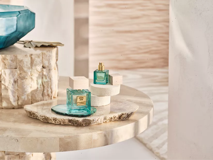 This vibrant fragrance takes you to the beautiful coast of India, where the sun warms up the gold sand and turquoise waters. Soleil d’Or radiates positive energy and refreshment, opening with a bright and crisp accord of pear, mandarin and bergamot. This splash of freshness is elevated with cool floral notes of freesia and lotus flower, complemented with a radiant yet subtle drydown of cedarwood and musks. This gorgeous, subtle scent belongs to the fresh family. You can easily refill this travel-sized bottle using our full-sized perfume. Order now from the official webshop.